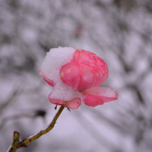Draußen schneit es. Dicke Flocken legen sich auf meine Rosen und ziehen den vertrockneten Köpfen der Monarden (Indianernesseln) eine hübsche kleine Mütze auf. Der Rosmarinbusch verbeugt sich unter der Schneelast.